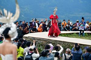 (250426) -- CONGJIANG, 26 abril, 2025 (Xinhua) -- Un desfile de modas se lleva a cabo durante un evento cultural...