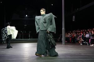 (250425) -- PRAGA, 25 abril, 2025 (Xinhua) -- Un modelo presenta una creación de Sofia Blahutova durante la edición de...
