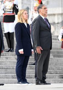 (250425) -- ROMA, 25 abril, 2025 (Xinhua) -- La primera ministra italiana, Giorgia Meloni (i) y el presidente del Senado,...