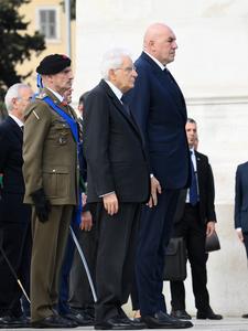 (250425) -- ROMA, 25 abril, 2025 (Xinhua) -- El presidente italiano, Sergio Mattarella (c), asiste a una ceremonia de colocación...