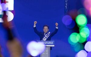 (250427) -- GOYANG, 27 abril, 2025 (Xinhua) -- Lee Jae-myung, exlíder del Partido Democrático de República de Corea, es elegido...