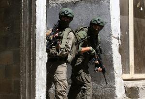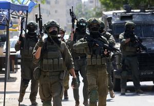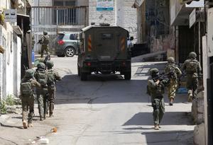 (250428) -- NAPLUSA, 28 abril, 2025 (Xinhua) -- Soldados israelíes son vistos durante una incursión militar israelí, en el campamento...
