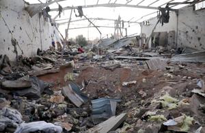 (250428) -- SANA, 28 abril, 2025 (Xinhua) -- Captura de pantalla de un video del centro de detención destruido por...