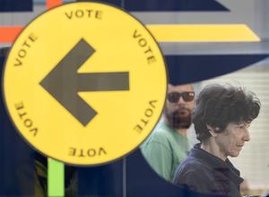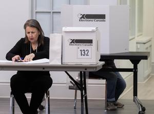 (250428) -- TORONTO, 28 abril, 2025 (Xinhua) -- Una mujer trabaja en un colegio electoral, en Toronto, Canadá, el 28...