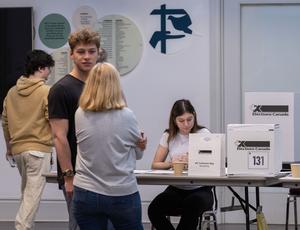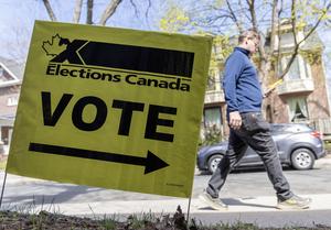 (250428) -- TORONTO, 28 abril, 2025 (Xinhua) -- Un votante llega a un colegio electoral, en Toronto, Canadá, el 28...