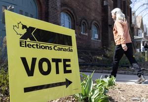(250428) -- TORONTO, 28 abril, 2025 (Xinhua) -- Una votante llega a un colegio electoral, en Toronto, Canadá, el 28...