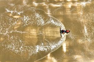 (250428) -- TIANJIN, 28 abril, 2025 (Xinhua) -- Imagen del 27 de abril de 2025 de trabajadores cosechando sal en...