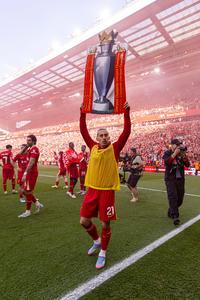 (250428) -- LIVERPOOL, 28 abril, 2025 (Xinhua) -- Imagen del 27 de abril de 2025 de Kostas Tsimikas, de Liverpool,...