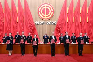 (250428) -- BEIJING, 28 abril, 2025 (Xinhua) -- Xi Jinping y otros líderes del Partido Comunista de China y del...