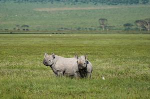 (250428) -- NGORONGORO, 28 abril, 2025 (Xinhua) -- Imagen del 26 de abril de 2025 de dos rinocerontes negros en...