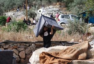 (250429) -- RAMALLAH, 29 abril, 2025 (Xinhua) -- Un palestino retira una silla después de que excavadoras israelíes demolieran un...