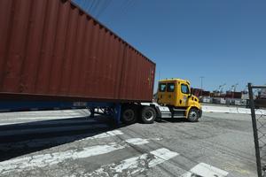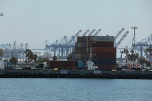 (250429) -- PUERTO DE LOS ANGELES, 29 abril, 2025 (Xinhua) -- Un camión es visto en el puerto de Los...