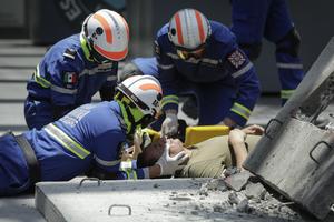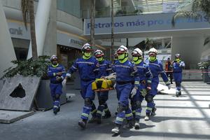 (250429) -- CIUDAD DE MEXICO, 29 abril, 2025 (Xinhua) -- Miembros de un equipo de rescate de emergencias participan en...