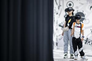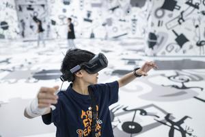 (250429) -- WUHAN, 29 abril, 2025 (Xinhua) -- Visitantes participan en la experiencia de realidad virtual de artefactos digitales "Odisea...