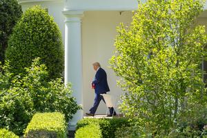 (250429) -- WASHINGTON, 29 abril, 2025 (Xinhua) -- El presidente estadounidense, Donald Trump, camina hacia el Jardín Sur para abordar...