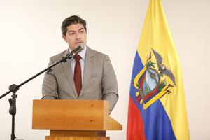 (250429) -- QUITO, 29 abril, 2025 (Xinhua) -- Imagen del 28 de abril de 2025 del viceministro de Producción e...