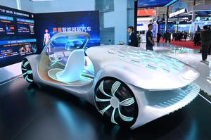 (250429) -- FUZHOU, 29 abril, 2025 (Xinhua) -- Un vehículo inteligente conectado al internet es visto en la VIII Cumbre...