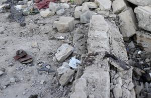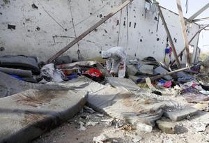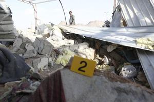 (250429) -- SANA, 29 abril, 2025 (Xinhua) -- Imagen del 28 de abril de 2025 de un investigador recolectando evidencia...