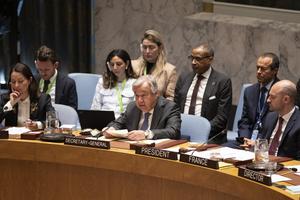 (250430) -- NACIONES UNIDAS, 30 abril, 2025 (Xinhua) -- Imagen del 29 de abril de 2025 del secretario general de...