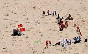(250430) -- SITIO DE ATERRIZAJE DONGFENG, 30 abril, 2025 (Xinhua) -- La cápsula de retorno de la nave espacial tripulada...