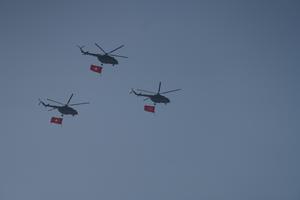 (250430) -- CIUDAD HO CHI MINH, 30 abril, 2025 (Xinhua) -- Helicópteros realizan una presentación en conmemoración del 50º aniversario...