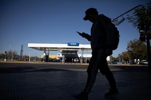 (250430) -- BUENOS AIRES, 30 abril, 2025 (Xinhua) -- Un hombre camina frente a una estación de servicio de la...