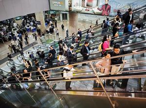(250430) -- NANJING, 30 abril, 2025 (Xinhua) -- Pasajeros descienden de un tren en la Estación del Ferrocarril de Nanjing,...