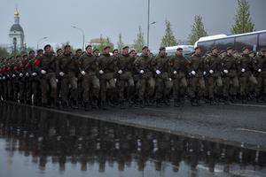 (250430) -- MOSCU, 30 abril, 2025 (Xinhua) -- Imagen del 29 de abril de 2025 de soldados preparándose para asistir...