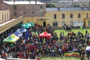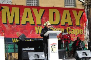 (250501) -- CIUDAD DEL CABO, 1 mayo, 2025 (Xinhua) -- Personas asisten a la manifestación del Primero de Mayo para...