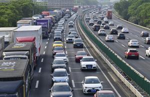 (250501) -- BEIJING, 1 mayo, 2025 (Xinhua) -- Vehículos circulan en una autopista, en Wuxi, en la provincia de Jiangsu,...