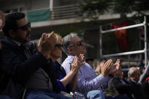 (250501) -- MONTEVIDEO, 1 mayo, 2025 (Xinhua) -- El presidente uruguayo, Yamandú Orsi (d), asiste a un acto conmemorativo por...