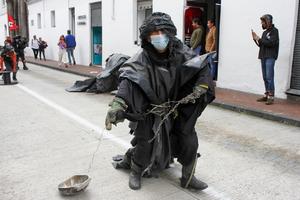 (250501) -- QUITO, 1 mayo, 2025 (Xinhua) -- Una persona realiza una presentación durante una marcha para conmemorar el Día...