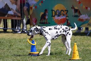 (250502) -- BUDAPEST, 2 mayo, 2025 (Xinhua) -- Imagen del 1 de mayo de 2025 de un perro presentándose en un festival canino, en Budapest, Hungría. (Xinhua/Attila Volgyi) (jg) (da) (vf)