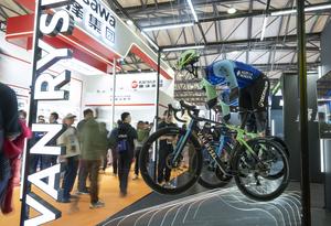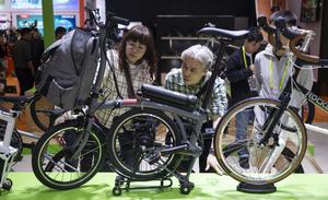 (250505) -- SHANGHAI, 5 mayo, 2025 (Xinhua) -- Compradores de Japón observan exhibiciones durante la Feria Internacional de Bicicletas de...