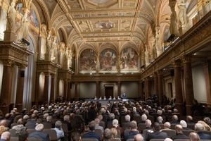 (250505) -- BUDAPEST, 5 mayo, 2025 (Xinhua) -- El presidente húngaro, Tamas Sulyok, habla durante la asamblea ceremonial de la...