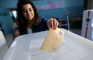 (250505) -- BEIRUT, 5 mayo, 2025 (Xinhua) -- Imagen del 4 de mayo de 2025 de personas formándose para votar...