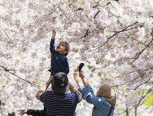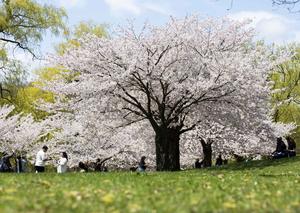 (250506) -- TORONTO, 6 mayo, 2025 (Xinhua) -- Personas pasan el tiempo bajo los cerezos en flor en el High...