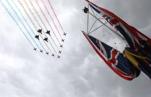 (250506) -- LONDRES, 6 mayo, 2025 (Xinhua) -- Imagen del 5 de mayo de 2025 de aviones volando en formación,...