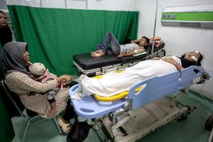 (250506) -- SUMATRA OCCIDENTAL, 6 mayo, 2025 (Xinhua) -- Pasajeros heridos en un accidente de autobús reciben tratamiento médico en...
