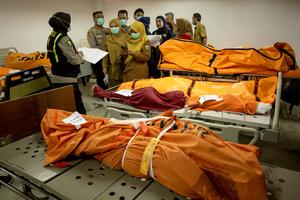 (250506) -- SUMATRA OCCIDENTAL, 6 mayo, 2025 (Xinhua) -- Funcionarios recolectan datos de las víctimas de un accidente de autobús...