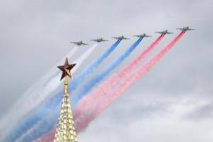 (250506) -- MOSCU, 6 mayo, 2025 (Xinhua) -- Imagen del 5 de mayo de 2025 de aviones volando en formación...