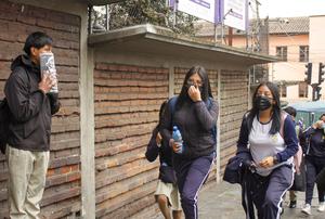 (250505) -- QUITO, 5 mayo, 2025 (Xinhua) -- Estudiantes portan mascarillas como medida de prevención por la alerta epidemiológica generada...