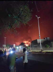(250505) -- PUERTO DE SUDAN, 5 mayo, 2025 (Xinhua) -- Humo y fuego son vistos después de un ataque con...