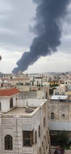 (250506) -- SANA, 6 mayo, 2025 (Xinhua) -- Imagen tomada con un teléfono celular de denso humo elevándose desde el...