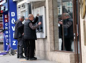 (250505) -- ANKARA, 5 mayo, 2025 (Xinhua) -- Personas retiran dinero de cajeros automáticos, en Ankara, Turquía, el 5 de...
