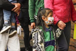 (250505) -- QUITO, 5 mayo, 2025 (Xinhua) -- Una niña porta una mascarilla como medida de prevención por la alerta...