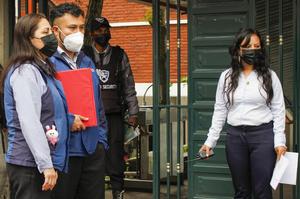 (250505) -- QUITO, 5 mayo, 2025 (Xinhua) -- Personal de una unidad educativa revisan el uso de mascarillas por parte...