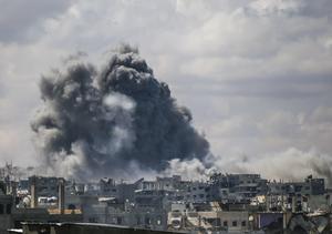 (250506) -- GAZA, 6 mayo, 2025 (Xinhua) -- Humo se eleva después de un ataque aéreo israelí, en la Ciudad...