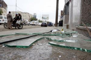 (250506) -- SANA, 6 mayo, 2025 (Xinhua) -- Imagen del 5 de mayo de 2025 de cristales rotos vistos después...