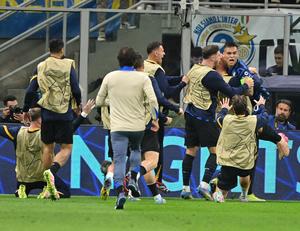 (250507) -- MILÁN, 7 mayo, 2025 (Xinhua) -- Imagen del 6 de mayo de 2025 de Lautaro Martínez (i), de...